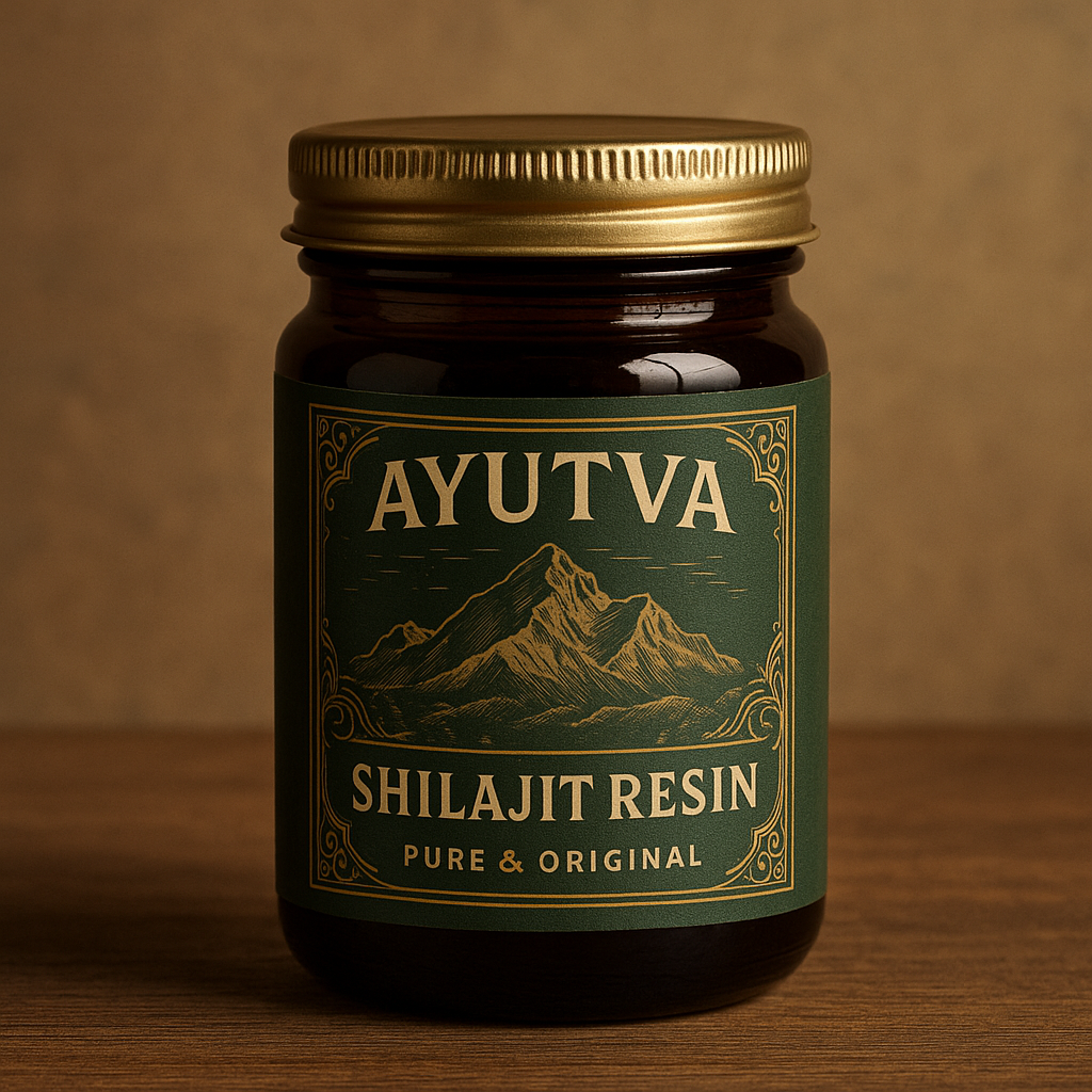 AYUTVA Shilajit Natural Resin is a premium blend crafted with pure Himalayan Shilajit, 24-karat gold Ayurvedic bhasma, 183rd-day harvested Nagori Ashwagandha, Gokshura, and Black Musli. This potent formulation is designed to naturally enhance strength, stamina, and overall gym performance.
